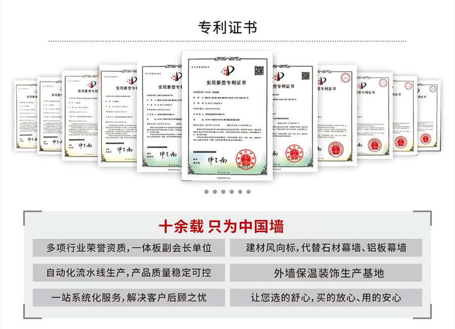 寶潤(rùn)達(dá)在保溫裝飾一體板領(lǐng)域的優(yōu)勢(shì),不僅僅只是建立在現(xiàn)代化的生產(chǎn)車間、先進(jìn)的制造工藝、卓越的產(chǎn)品性能上。寶潤(rùn)達(dá)自1996年涉足外墻裝飾領(lǐng)域以來(lái),積累了24年的行業(yè)經(jīng)驗(yàn),擁有一支行業(yè)高水準(zhǔn)的設(shè)計(jì)、安裝施工隊(duì)伍,真正具備集產(chǎn)品、設(shè)計(jì)、施工為一體,打造精品工程的能力。只要您給寶潤(rùn)達(dá)參與的機(jī)會(huì),我們就有十足的信心向您提供放心的系統(tǒng)化解決方案。