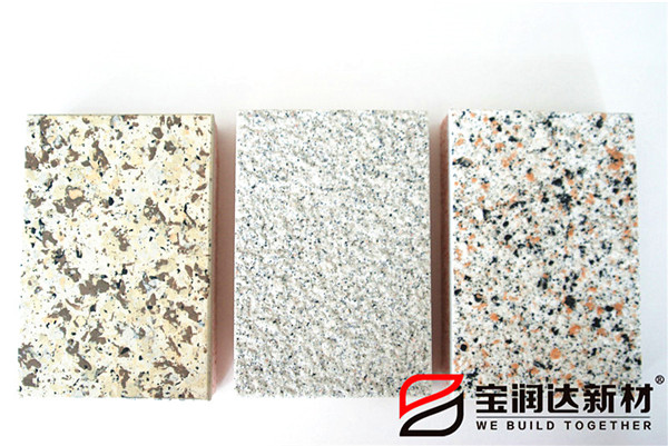 寶潤(rùn)達(dá)一體板飾面層采用真石漆,多彩漆,水包水,水包砂,乳膠漆,實(shí)色/金屬氟碳超3000種顏色定制,可根據(jù)石材定做樣品